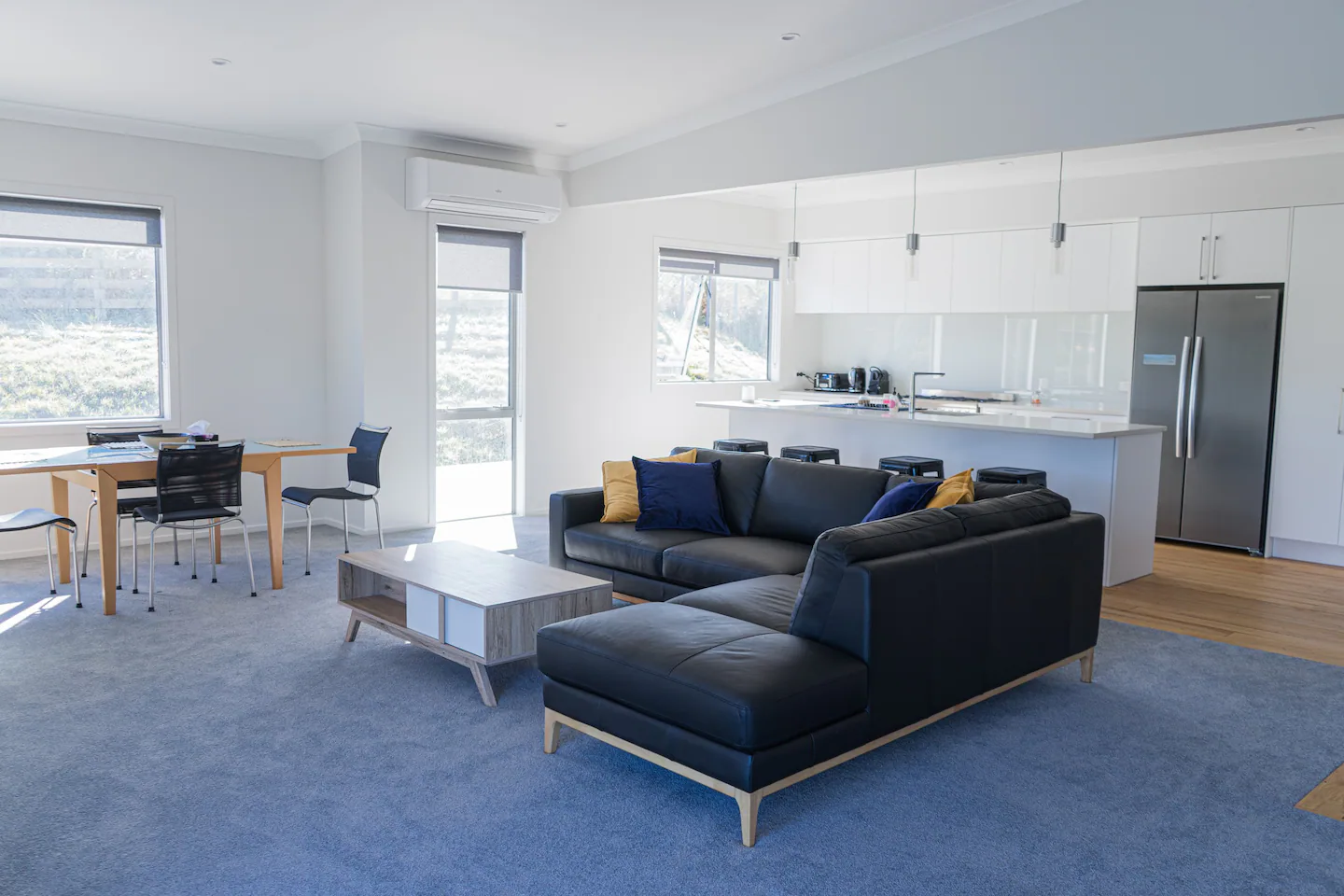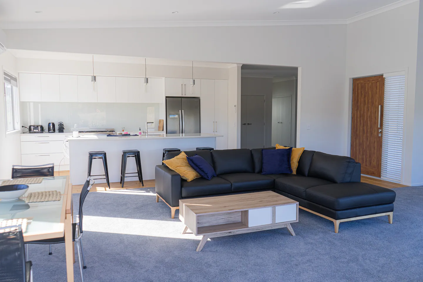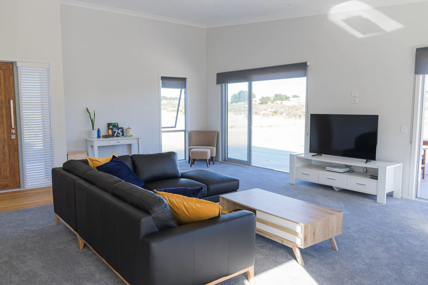 The open plan living and double stacking sliding doors allow fabulous flow to a huge deck facing north-west to make the most of sunny outdoors. A spa pool is available to relax in and enjoy the view.